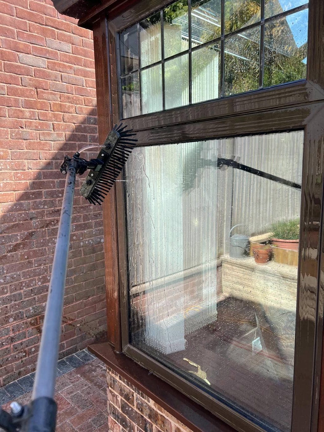 Using the latest purified water technology, we can thoroughly clean all frames, sills, doors and glass with our water fed pole.